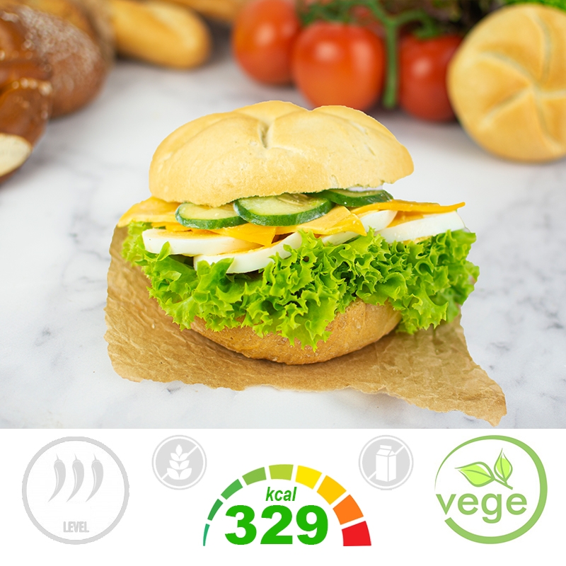 Składniki: Kajzerka [mąka PSZENNA, woda, mąka żytnia, drożdże, sól, olej rzepakowy, słód pszenny jasny], JAJA kurze, Majonez domowy (olej rzepakowy, żółtka JAJ, musztarda), Mix sałat, Boczek wieprzowy, Szczypiorek, Musztarda (woda, ocet spirytusowy, GORCZYCA, cukier, sól, przyprawy), Czosnek, Sól, Pieprz czarny